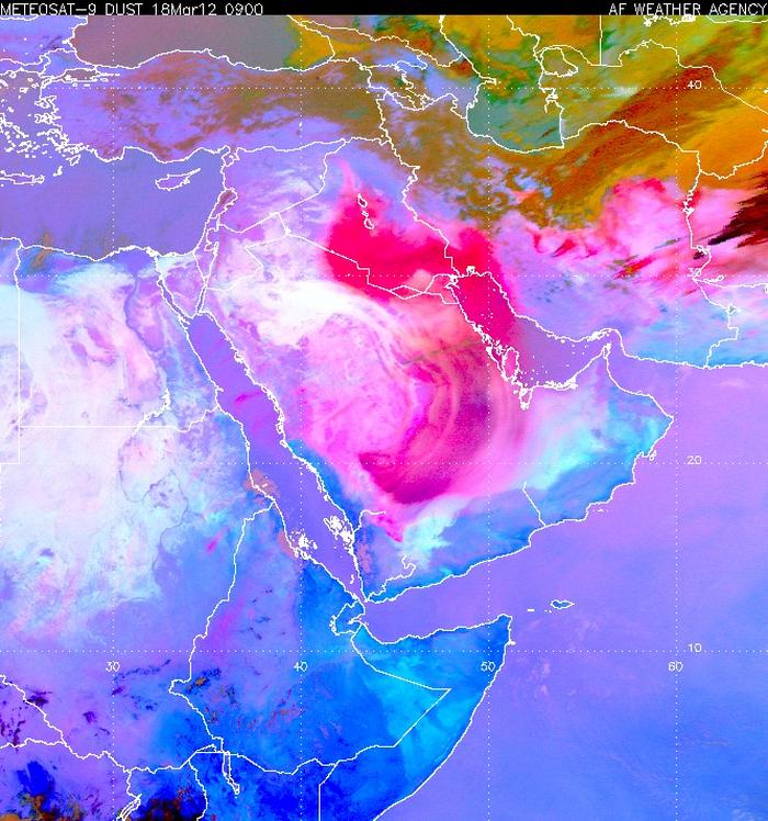 عاصفة رملية بمساحة تزيد عن 2.5 مليون كيلومتر مربع تضرب الجزيرة العربية والعراق وجنوب فلسطين والأردن 18/03/2012 13:14:00 تؤثر عاصفة رملية ضخمة جدا سببها منخفضا جويا عميقا كان يتمركز شمال العراق مترافقا مع كتلة هوائية قطبية شديدة البرودة ، حيث اثرت العاصفة الرملية على معظم المناطق الوسطى والشرقية من السعودية وجنوب الجزيرة العربية وتدخل اليمن في هذه اللحظات ، وبدأت المناطق الموجودة في غرب السعودية بتاثر برياح نشطة شرقية اثارت الغبار بشكل كثيف احيانا ، ووصلت العاصفة الرملية حتى اطراف الامارات وجنوب السعودية. متوقع اندفاعها من جديد الى الجزيرة العربية تؤدي الى تجدد انخفاض مستوى الرؤية الافقية"تميل اكثر للغرب ". ويتوقع ان تنحسر العاصفة على الاقل في ساعات الفجر من يوم الاثنين على معظم المنطقة ، حيث يترسب الغبار تدريجيا ، مع بقاء تاثيره على شكل عوالق فوق المناطق التي غادرتها العاصفة . ومن المتوقع ان تتاثر اليمن ومرتفعات جنوب غرب السعودية بهذه العاصفة لاحقا من نهار اليوم ، حيث ستدفع رياح شمالية شرقية تجارية ناحية جنوب غرب الجزيرة العربية ومرتفعات اليمن ، وتبقى الاجزاء الوسطى والجنوبية من العراق ودولة الكويت ومعظم شمال السعودية بالتاثر بهذه العاصفة حتى ساعات الفجر من الغد . ويتوقع ان تصل غدا اطراف العاصفة الرملية الى جنوب فلسطين والاردن بفعل رياح جنوبية شرقية قد تدفعها ناحية اقصى شمال غرب السعودية والاردن . وتاثرت دولة الكويت والعراق بقلب العاصفة الرملية ، حيث تم تعليق الدراسة في دولة الكويت ، حيث ما زالت الكويت تتاثر بالعاصفة الرملية القوية منذ ساعات ظهر السبت مسببة انخفاضا شديدا في مدى الرؤية الافقية . وتاثرت العاصمة الرياض والمناطق الشرقية من السعودية بالعاصفة الرملية ، حيث تاثرت المناطق الشرقية بشكل كبير مشابه الى حد ما مع كل من الكويت والعراق وشمال شرق السعودية ، وانخفض مستوى الرؤية الافقية الى اقل من 500 مترا في كثيرا من الفترات ، وكانت العاصفة الرملية الشديدة مترافقة مع رياح نشطة جدا وصلت في بعض المناطق الى 70 كم في الساعة . وما يميز هذه العاصفة الرملية هو مدى ضخامتها ، حيث تمتد ما بين غرب المناطق الوسطى من السعودية حتى المناطق الشرقية منها ، وتمتد ما يين وسط وشمال العراق حتى الحدود اليمنية ، بمساحة تصل اكثر من مليونين ونصف الكيلومتر مربع ، وقد تزداد رقعتها لتتعدى 3 ملايين كيلومتر مربع . وتتكون هذه العاصفة الرملية من عدة موجات رملية شديدة تتشكل فوق العراق وتندفع بقوة نحو الجنوب والجنوب الشرقي ثم الجنوب الغربي تابعا لحركة الرياح ، حيث تظهر صور الاقمار الصناعية الى تشكل موجة ثالثة جديدة موجودة فوق وسط وجنوب العراق من المتوقع ان تصل تاثيرها لاحقا الى الجزيرة العربية تؤدي الى تجدد انخفاض مستوى الرؤية الافقية ، يسبقها تحسن مؤقت حتى وصول الموجة الجديدة . منقول عن موقع المناخ العربي |