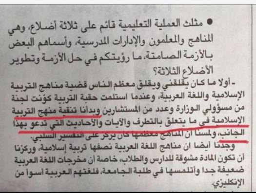 في مقابلة مع وزير التربية في الكويت مع جريدة القبس صرح..